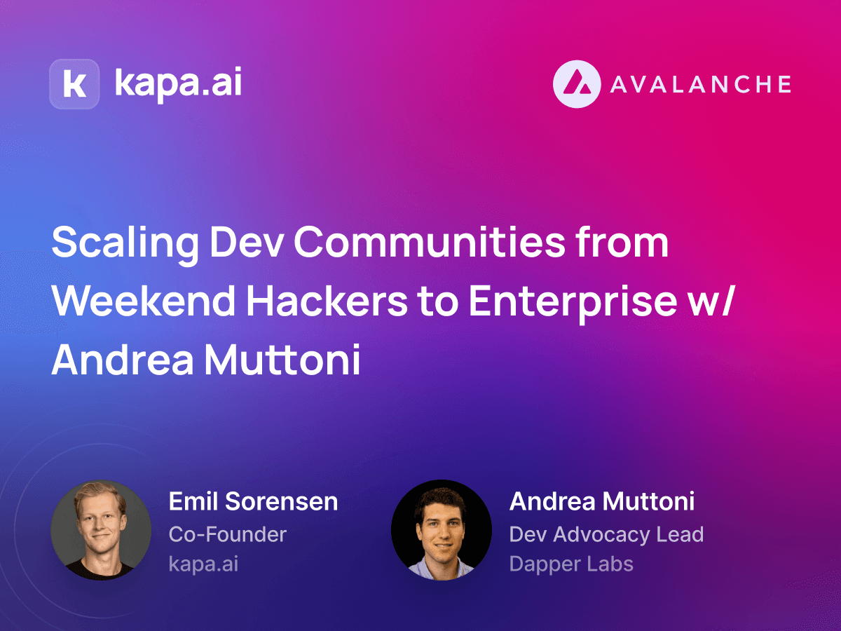 Join kapa.ai co-founders Emil and Finn as they interview forward-thinking developer community builders, machine learning experts, and kapa.ai customers.