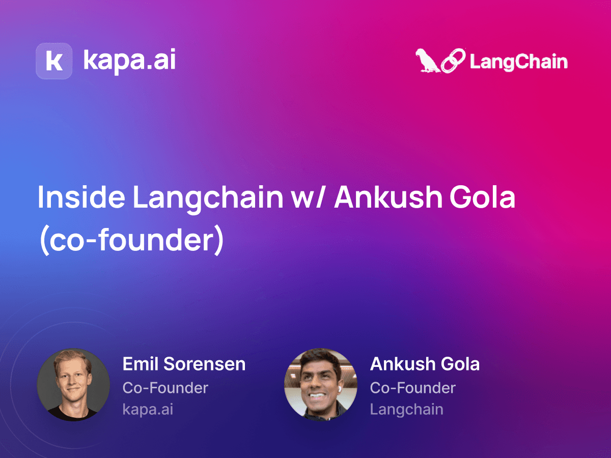 Welcome to the kapa.ai podcast! In this episode, we sit down with Ankush Gola, co-founder of Langchain, to explore the incredible journey of this open-source project. Join us as we delve into the founding story of Langchain, discuss the challenges of managing explosive growth in the open-source community, and learn about the vision and future of LangchainJS.