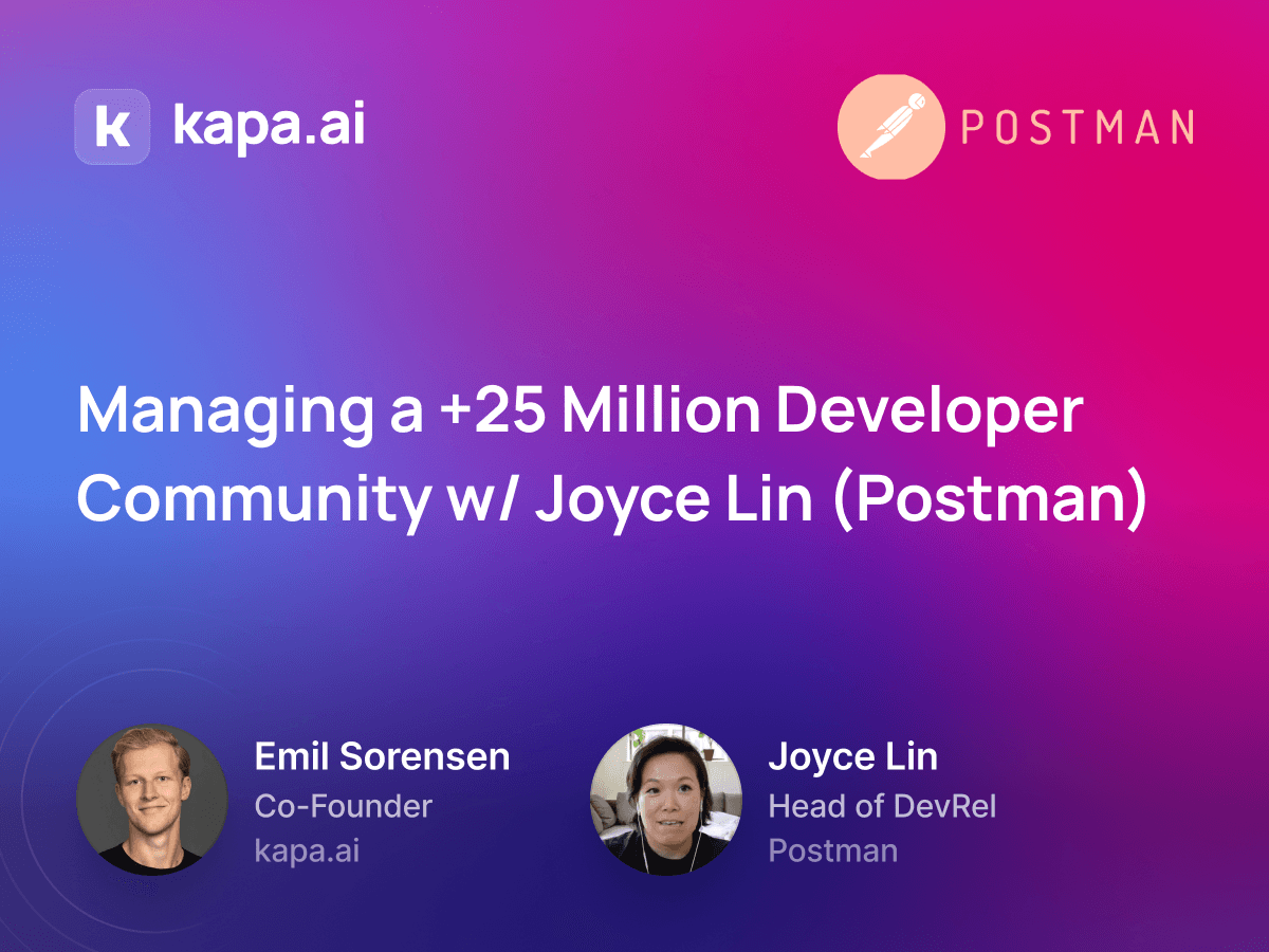 Hear how Postman manages their more than +25 million developers and get to know more about Joyce's thoughts on dev advocacy.