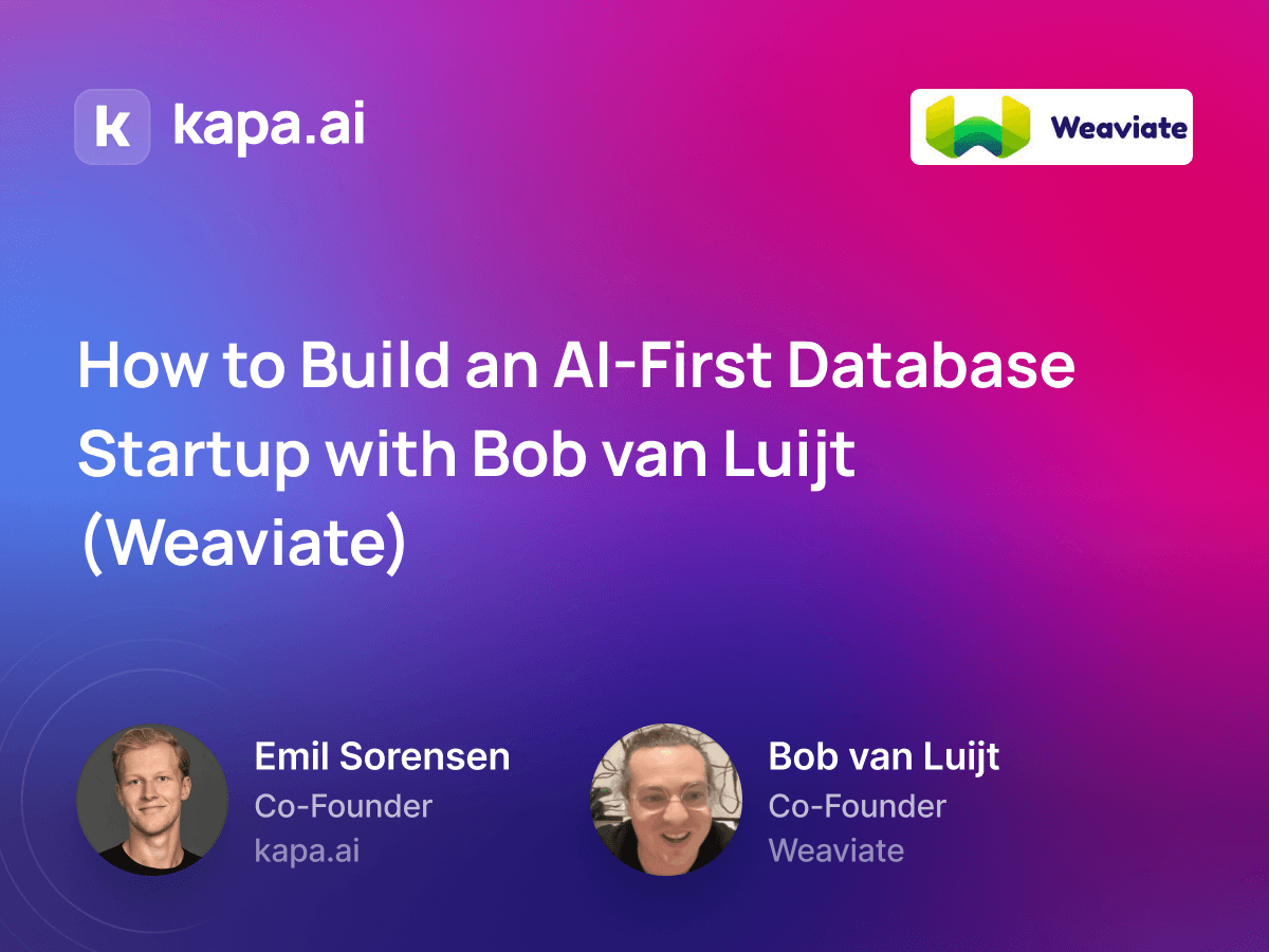 Hey everyone! Thank you so much for watching the 2nd episode of the kapa.ai podcast. In this episode Bob shares his story of building Weaviate and how he sees the future of AI-first databases evolving.